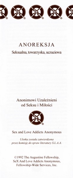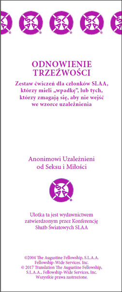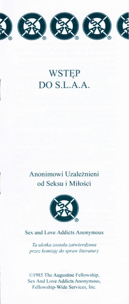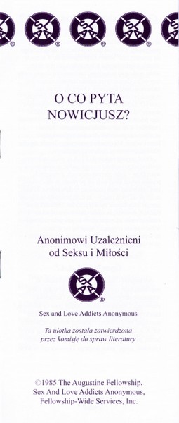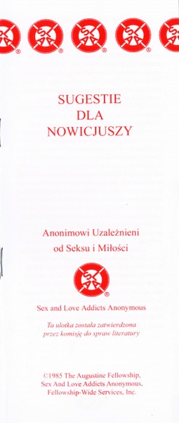 Autoryzowane, najnowsze wydanie tekstu bazowego Wspólnoty Anonimowych Uzależnionych od Seksu i Miłości. Okładka w wersji anonimowej.